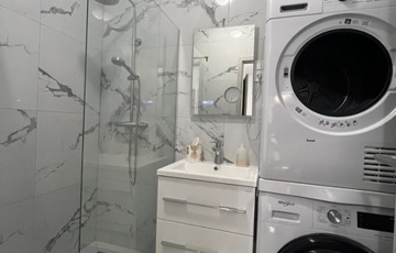 A fürdõszoba zuhanyzós, és külön, kézmosóval ellátott WC is rendelkezésre áll, ami még komfortosabbá teszi a mindennapokat. Az ingatlan teljesen bútorozott és gépesített, így tényleg csak a személyes tárgyait kell hoznia. Minden bútor és berendezés új, mivel a lakás még senki által nem lakott az építés óta.