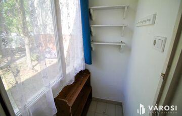 A szoba tágas és napfényes, az előszobából nyílik a minimalista konyha és a zuhanyzós fürdőszoba. Hűtőszekrény, gáztűzhely, tv és internet található az ingatlanban, a bútorzatot egy kinyitható kanapé és egy kör alakú étkezőasztal alkotja két székkel. Különlegessége egy elbűvölő kis télikert, ahol nyugodtan elfogyaszthatja a lakó a reggeli kávéját, miközben belemerül a természet látványába az otthon kellemes melegéből. A fűtés házközponti távfűtés. A lakás délnyugati tájolású, így mindig fényes és az est közeledtével is élvezhetőek a nap sugarai.