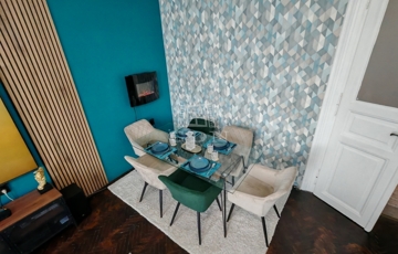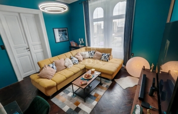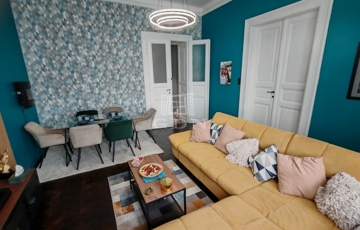 Az ingatlan egy 1910-ben épült, historizáló–eklektikus stílusjegyeket hordozó társasházban található, amely szépen őrzi a klasszikus polgári építészet hangulatát. A lakás különleges atmoszféráját a 3,6 méteres belmagasság, a tágas, világos terek, valamint a polgári lakásokra jellemző elegáns arányok adják, amelyeket a felújítás során fiatalos dizájnnal ötvöztek.