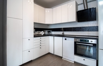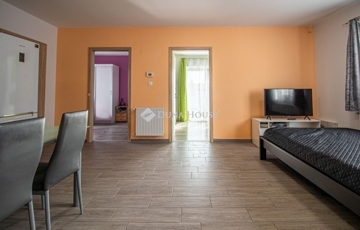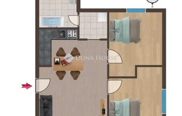 Az ingatlan elosztása praktikus és jól élhető: amerikai konyhás nappali, két külön nyíló hálószoba, háztartási helyiség, fürdőszoba WC-vel.