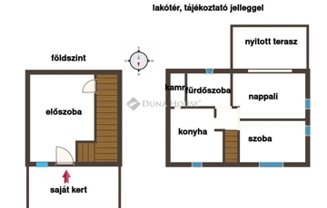 A lakásba belépve egy tágas, 12 nm-es előszoba fogad minket (praktikus lépcső alatti tárolóval). Az emeleten kapott helyet az élettér:
