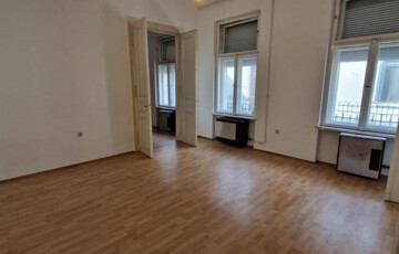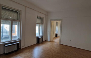 Kaposvár belvárosában, az Ady Endre utcában kínáljuk megvételre ezt az első emeleti, 93 m2-es lakást. Méretei és elosztása alapján alkalmas egy nagyobb családi otthon kialakítására, vagy kettéválasztva két kisebb lakást is létre lehet hozni belőle. Bejárata függőfolyosóról nyílik, ami saját erkélyként is használható, mivel leghátsó lakás lévén, le van zárva. Az előtérből jobbra két egymásból nyíló, nagyméretű, parkettás szoba található, a végén pedig a fürdő. Balra az egykori konyha van a kamrával, és egy kicsi, de ablakos tároló helyiség. A belmagasság lehetővé teszi a galériázást, ezzel szükség szerint tovább növelhető a lakóterület. Minden ablak nyugati tájolású, a függőfolyosóra, illetve a Kontrássy köz felé néznek. A fűtés egyedi gázos, konvektoros. Ha valaki kettéválasztaná a lakást, ötletes megoldásokkal, galériákkal, álmennyezettel akár két 50-60 m2 lakóterületű tágas, barátságos és praktikus otthont is kihozhat belőle. Remek lehetőség a belváros szívében befektetésként, vagy saját használatra egyaránt!