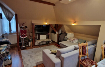 Kaposvár egyik kedvelt, csendes, nyugodt részén, a Zaranyi lakótelepen kínáljuk megvételre ezt a kiváló állapotú, első emeleti, belső kétszintes téglalakást. A társasház folyosójáról az előtérbe lépünk, majd a közlekedőből nyílik jobbra a külön kialakított fürdő és WC, balra pedig egy háló. Tovább haladva jutunk a tágas étkező-nappaliba, ami egylégterű a konyhával. Ide csatlakozik egy másik háló, illetve innen vezet fel a lépcső a galérián kialakított harmadik szobába. A lakás tetőtérbeépítéssel készült, így a falak és a mennyezet játékos felületeket, tereket hoznak létre, nem mindenhol a megszokott derékszögekkel találkozunk. A ház 1996-ban épült, de a külső nyílászárókat, valamint a bejárati ajtót két éve kicserélték. A fűtés egyedi gázos, Ariston gázkazán biztosítja a fűtést és a meleg vizet. Plusz légkondi berendezés szolgálja a komfortérzetet. A lakás alapterülete a tulajdoni lap szerint 67,3 m2, de ehhez még hozzáadódik a 22 m2-es galériás szoba, így ténylegesen 89,3 m2 áll rendelkezésre. Tartozik a lakáshoz több saját és egy közös tároló. A környéken minden megtalálható, ami a hétköznapi élethez szükséges.