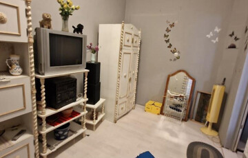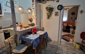 Kaposváron, a Bartók Béla utcában kínáljuk megvételre ezt a valóságban 67 m2-es (a tulajdoni lap szerint 57 m2-es) társasházi lakást. A földszinten helyezkedik el, 1 + 2 félszobás. Bejárata hátul, a terasz felől nyílik, ahonnan az előtérbe léphetünk. Ide kapcsolódik a zuhanyzós fürdő, illetve innen mehetünk tovább a tágas étkezős konyhába, majd az utcafronti nagyszobába, vagy a legkisebb, jelenleg gardróbként használt szobába. A nagyszobából nyílik még egy háló utcai ablakkal. A lakás jó állapotú, két éve történtek benne felújítások. Fűtése kétféle módon megoldható, van egy kályha a nagyszobában, ami kellemes meleget ad, illetve elektromos radiátorokkal. Tartozik hozzá egy teraszként jól kihasználható, betonozott udvar fedett kiülős résszel, valamint melléképületek és pince is. A belváros gyalog 10 perc sétával elérhető, de buszmegálló is van a közelben.