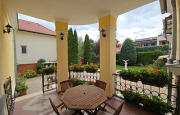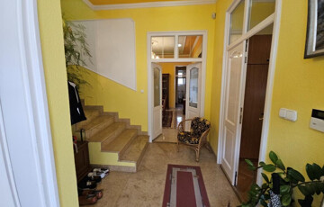 Kaposvár egyik legszebb utcájában, a Kassa utcában kínáljuk megvételre ezt az igazán igényesen megtervezett és felújított, kibővített elegáns kétlakásos polgári családiház önálló földszinti lakását a hozzá tartozó teljes telekkel. Az étkező helyezkedik el középen, ide csatlakozik a délnyugati fekvésű, kert felé néző kellemes terasz, illetve innen nyílik minden további helyiség közvetve vagy közvetlenül. Van három tágas, keleti tájolású szoba - a szélső déli ablakkal is ellátva, - fürdő zuhanyzóval és káddal, külön WC, valamint a konyha. Plusz egy háztartási helyiség, ami részben mosókonyha, részben tároló, de itt kapott helyet a kazán és a bojler is. Mindhárom szoba megközelíthető külön is, de az első és a középső át is járható. Az első, délkeleti szobának önálló bejárata nyílik a lépcsőházból is, így akár iroda funkcióra is alkalmas. A nappaliként használt középső szobában van egy üvegfalú kandalló, ami nem csupán szép és jó hangulatú, hanem hasznosan egészíti ki a cirkós fűtést. Minden külső nyílászáró SCHÜCO tip., hőszigetelt üvegezéssel, redőnnyel. A lakás alatt több részből álló pince, hátul dupla garázs és melléképület áll rendelkezésre, ezek összesen 209 m2-et tesznek ki (lakótér: 128,54 m2, terasz: 13,31 m2, pince: 28,14 m2, garázs és tárolók: 39 m2). A telek 630 m2, a garázsokig térkövezve, egyébként gyeppel borított, szépen parkosított. Mind a lakás, mind a kert kiváló állapotban vannak. A 3 fázis vételezése mind az udvaron, mind a garázsban rendelkezésre áll. Elsősorban Pécsen vagy környékén építési telket, családi házat értékegyeztetéssel beszámítunk kizárólag olyan helyen, ahol van vezetékes internet.