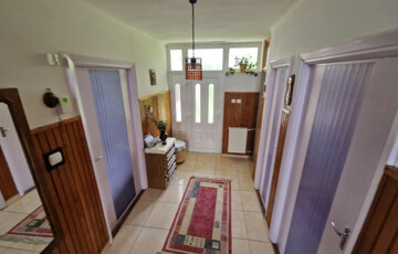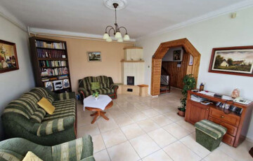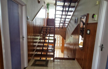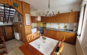 Kaposvár Tüskevári városrészében, a Könyves Kálmán utcában kínáljuk megvételre ezt a szinteltolással épült családi házat. Az utcáról az előtérbe lépünk, amitől jobbra a garázs található, balra egy kis gardrób, aztán a WC, majd a fürdő. Néhány lépcsőn lefelé a nappaliba, illetve az azzal egy légterű étkezős konyhába juthatunk. Innen nyílik egy kellemes és védett terasz hátra a kert felé, valamint a kazánház és a kamra. Ha az előtérből felfelé indulunk, ott két oldalt egy-egy szobát találunk a nappali és a konyha fölött, szemben pedig egy praktikus erkélyt a terasz fölött. Megfordulva és tovább haladva felfelé van még egy szoba és egy fürdő, és végül a legfelső szinten is kialakítottak plusz egy szobát. Így a tágas nappalin kívül van egy nagyobb szoba, valamint három hálószoba. A teljes lakóterület 130 m2. A ház kiváló állapotú, külső nyílászárói hőszigeteltek, műanyag keretesek. Fűtése gázkazánnal megy, és a nappali sarkában van egy cserépkályha is. A telek 789 m2-es, enyhén lejt, igazán szépen gondozott, parkosított, karbantartott, madárbarát. Mind a kert, mind a ház jó hangulatú, barátságos.