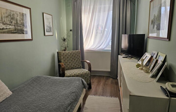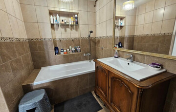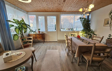 A gyógyvízéről méltán nevezetes Igalban, a fürdőtől 5 perc sétára kínáljuk megvételre ezt a háromszintes, felújított házat. Mindhárom szint egy-egy teljes értékű lakást foglal magában, külön bejárattal rendelkezik, így külön-külön használható, kiadható. A földszinten 77 m2-es lakótér áll rendelkezésre, ahol van egy tágas, világos nappali-étkező, ami a terasz beépítésével jött létre, mellette a jól felszerelt, gépesített konyha, kamra, fürdő zuhanyzóval és káddal, külön WC, mosókonyha, egy háló, plusz egy nagyobb méretű tároló, ami igény szerint szobává alakítható, és az alkotó műhelyként is használatos előtér, valamint a közlekedő, ahonnan minden helyiség nyílik. Az emeletekre külső lépcső vezet. Az első emeleten a nappaliba lépünk, ez a lakosztály központi része, innen nyílik a kellemes terasz, a konyhafülke, a zuhanyzós fürdő a WC-vel, valamint két hálószoba. Itt a lakóterület 43 m2-es, amit megnövel a 11 m2-es terasz. A legfelső szint elrendezése hasonló, csak kicsit kisebb, lakótere 40 m2-es, erkélye 8 m2-es. A teljes ház mind műszakilag, mind esztétikailag fel lett újítva, minden külső nyílászáró hőszigetelt, műanyag keretes, a fűtés saját gázkazánnal működik. A teljes lakótér összesen 160 m2, plusz a két erkély még 19 m2. A vendégház bejáratott vendégkörrel rendelkezik, stabil jövedelmet biztosít. De saját részre, többgenerációs családi házként is megállja a helyét. A telek 285 m2, szépen gondozott. Elhelyezkedése kiváló, a település központi részén, de csendes, nyugodt helyen áll hasonló funkciójú házak, kertek között. A megyeszékhely, Kaposvár autóval fél óra, a Balaton szintén ennyi idő alatt érhető el. A gyógyfürdő télen-nyáron üzemel, a vendégház egész évben, folyamatosan kihasználható.