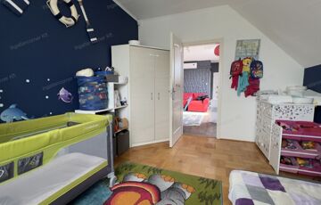 Saját körbe kerített 176nm kert, melyben gyümölcs fák találhatóak, gyerek játszótér, csúszda, fűszer kert, trambulin, nyáron medence.