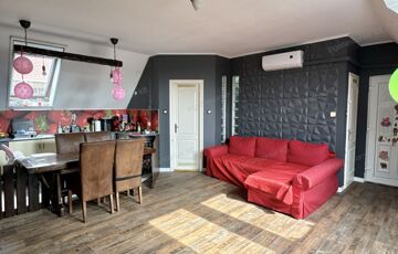 Soroksáron a Hősök terénél eladó, 4 lakásos társasházban, bruttó 85nm tetőtéri lakás. Az ingatlanhoz tartozik 52nm terasz, 28nm GARÁZS, 2 kocsi beálló és 176nm saját, lekerített kert!