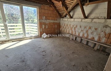 Pátyon Eladó egy befejezetlen családi ház a központhoz közel, kiváló megközelíthetőséggel.A ház három szinten 360 nm-es , a telek 909 nm.A pinceszinten nagyméretű garázs, tárolók és kazánház található.A földszinten nagy nappali, étkező, konyha valamint fürdő, gardrób és egy háló található.A tetőtér kialakítása az új tulajdonosra vár.