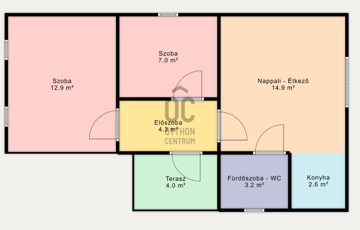 - Amerikai konyhás nappali + 2 külön nyíló hálószoba