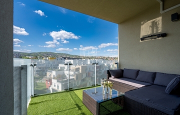 SASAD LIGET LAKÓPARK 5. ÜTEMBEN LEGFELSŐ EMELETI ELVEHETETLEN PANORÁMÁS KOMPAKT LAKÁS