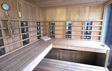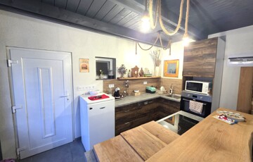 Egy felújított, lakható melléképület konyhával és fürdőszobával, (radiátoros fűtés) amelyhez egy 45 m²-es fedett, fűthető terasz kapcsolódik nyári konyhával és többszemélyes szaunával.