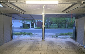 Kétállásos, elektromos kapuval ellátott garázs, valamint további egy 40 m²-es műhely/tároló.