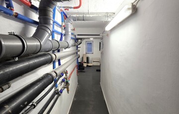 25 m²-es, ahol a gépészet mellett egy edzőterem lett kialakítva.