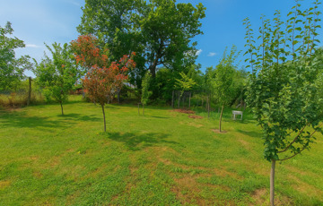 A 888 m²-es telek gondozott, több termő gyümölcsfával, valamint gazdálkodásra, kertészkedésre is kiváló lehetőséget kínál.