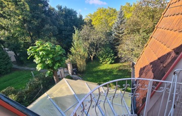 A házhoz két hangulatos terasz tartozik, ahonnan lenyűgöző kilátás nyílik a környező erdőre és parkra.