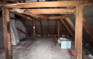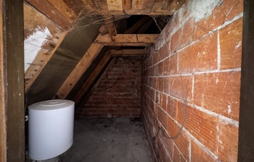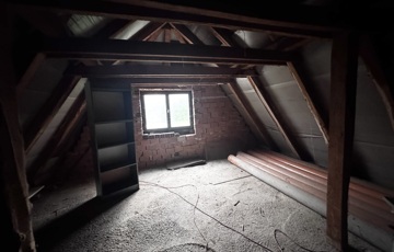 A ház magas tetős, cserépfedésű, az emeleten pedig egy további, mintegy 53 m²-es szerkezetkész tetőtér áll rendelkezésre, amelyben akár további lakóterek is kialakíthatók.