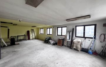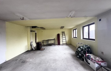 Mellette helyezkedik el egy szerkezetkész helyiség, amely a leendő fürdőszoba kialakítására előkészítve várja az új tulajdonos elképzeléseit.