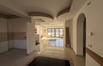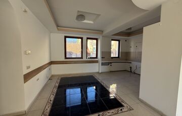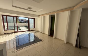 Az alsó lakás egy 87 m²-es, tágas elrendezésű otthon, amelyhez egy impozáns, 25 m²-es belső udvari terasz kapcsolódik