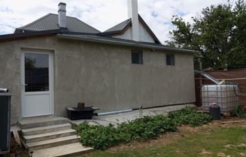 A kétszintes, eredetileg 1958-ban téglából épült házat 2023-ban kibővítették és korszerűsítették.
