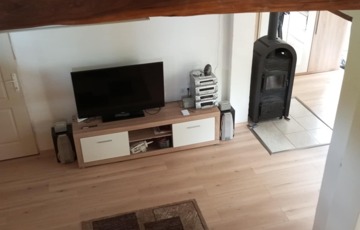 Fűtés: fatüzelésű kandalló + emeleti hűtő-fűtő klíma