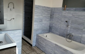 Fürdőszoba káddal és zuhanyzóval + WC
