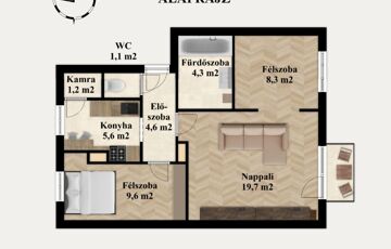 - Lakótér: 54 m²