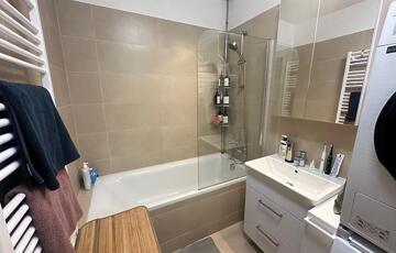 A Balance Garden Lakópark 2023-ban átadott, modern épületének második emeletén található ez a letisztult, újszerű lakás.