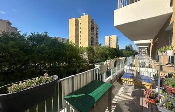 A nappaliból és a hálószobából is elérhető, közel 10 m²-es terasz egy parkos, csendes sétányra néz — ideális a nyugodt kikapcsolódáshoz.