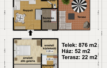 - A félemeleten található a konyha, majd onnan tovább, az emeleten egy álló galéria és egy kis előtér.