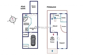 Egy szint a barátoknak: A legalsó szinten egy garázson át érkezünk a házba, ahonnan a hangulatos közösségi térbe jutunk, gyönyörű borospincével, és egy külön fürdőszobás wellness helyiséggel (szauna, jacuzzi)