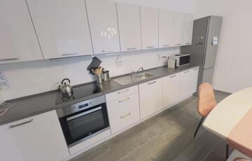 A lakásban egy vadonatúj fiatalos konyhabútor gépekkel ,a nappali bútorzatt,(kanapé,étkezőasztal,hatalmas gardrób szekrény,)a hálószobában pedig egy beépített gardróbszekrény várja leendő ideiglenes ,ám hosszú távú lakóit.