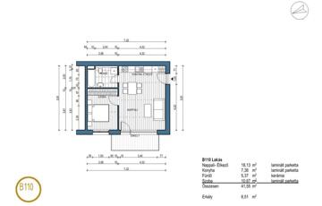 Elosztása: amerikai konyhás nappali , egy hálószoba, fürdőszoba , terasz és egy parkosított kis kert.Az épületek kivitelezésénél magas minőségű alapanyagok kerültek beépítésre.
