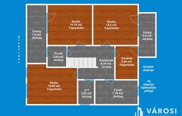 A lakás 1 db amerikai konyhás nappalival, 4 db hálószobával, 3 db fürdőszobával, külön Wc-vel, közlekedővel, előtéttel, gardóbbal terasszal, erkélyekkel rendelkezik.