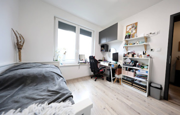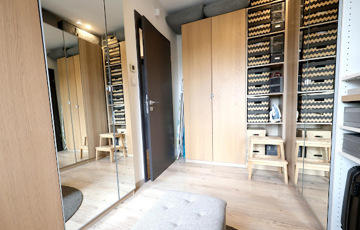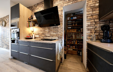 A nappalihoz kapcsolt konyha kamrás, a szekrénysor becsapódás-gátló és fiókfékező technológiával szerelt Kikás bútorzat, háztartási gépeit tekintve Bosch márkával ellátott prémium minőségű kivitelezés jellemzi. A főzést kivezetett szagelszívó és beépített porszívó teszi komfortossá.