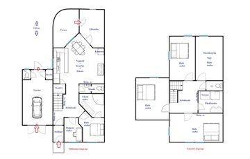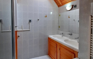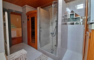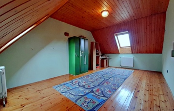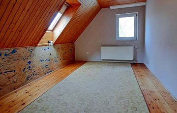Az emeleten 3 tetőtéri szoba, egy (további szobává visszaalakítható) mosókonyha, külön helyiségben toalett, és egy tusolós fürdőszoba is helyet kapott, amelyben az infraszauna külön megegyezés tárgyát képezi.