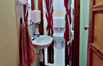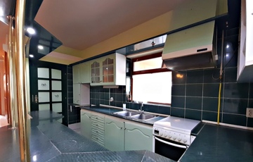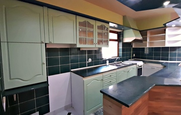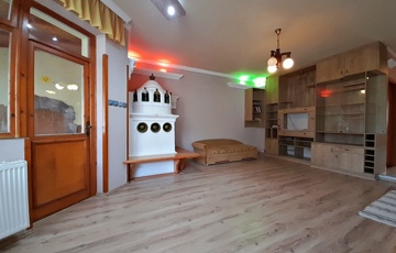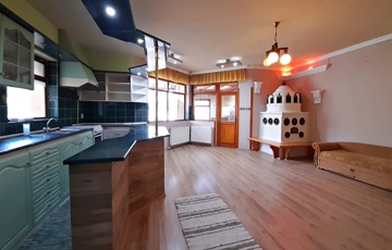 A földszinten a konyha-nappali ékessége egy csodálatos és egyedi építésű koronás cserépkályha, melyet egy külső helyiségből lehet begyújtani, és táplálni.