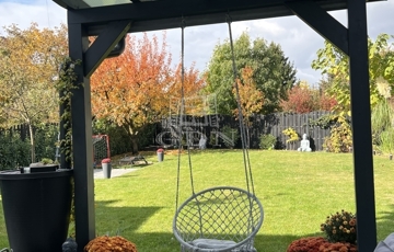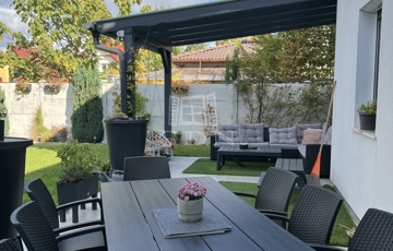 - Nagy terasz fedett részekkel, gyönyörűen parkosított kert