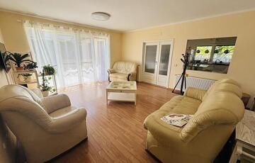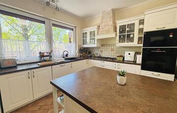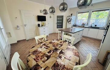Az ingatlan szíve a lenyűgöző, tágas nappali–étkező–konyha tér, ahol a 2021-ben felújított, prémium Nobilia konyha a modern elegancia tökéletes példája. Innen, akárcsak a ház további helyiségeiből, közvetlen kijárat nyílik a teraszra, amely a jelenlegi 20 nm-ről akár 60 nm-re bővíthető – tökéletes helyszínt teremtve exkluzív vendéglátáshoz vagy meghitt családi pillanatokhoz.