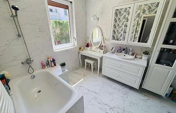 A 826 nm-es, gondosan megtervezett telken elhelyezkedő, 177 nm-es lakótér minden részletében a kényelmet és az exkluzivitást szolgálja. A tavaly újraszínezett, prémium minőségű, 37,5 cm vastag Ytong falazattal és 10 cm grafit szigeteléssel épült otthon időtálló értéket képvisel, miközben energiahatékonysága is kiemelkedő.