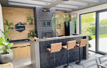 Prémium kültéri konyha szigettel, sütővel és vaslappal