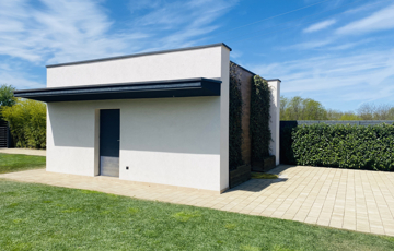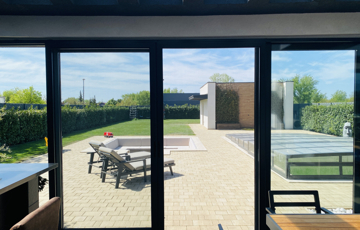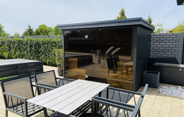 Kültéri zuhanyzó és háromrétegű, hőszigetelt üvegtető