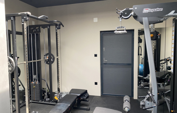 Külön épületben kialakított, teljesen felszerelt edzőterem (klíma, szellőztetés, TV, hangrendszer)