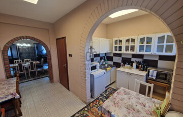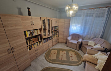 - Helyiségek a földszinten: 3 szoba, konyha, étkező, közlekedő, fürdőszoba, külön WC, nappali, tároló, kazánház