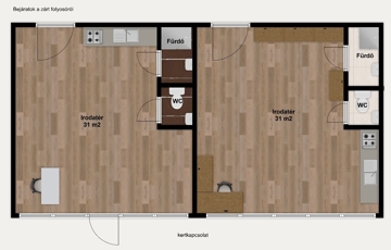 Mivel a tulajdoni lapon iroda, az Otthon Start hitel nem vehető fel rá, a tulajdonos Kft, de az ingatlan nem áfás. A terület éjszaka őrzött, a közös költség tartalmazza az őrszolgálat árát is. Az átlag rezsi 30-40e Ft/hónap/helyiség.