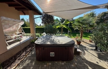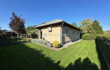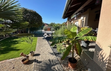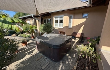 Eladó Nagyvenyimen egy 146 m2-es, 2009-ben épült, téglaépítésű családi ház. 3 szobával és egy tágas, amerikai konyhás nappalival rendelkezik. Ez az otthon, világos és barátságos hangulatú. Az épület szerkezetileg masszív, gondosan karbantartott, modern igényeknek megfelelően kialakított. Az ingatlan kiemelkedik tervezésének és elosztásának köszönhetően is, ahol minden helyiség ideális méretű és könnyen bútorozható, hogy otthonosan érezze magát a szobákban és a tágas nappaliban egyaránt. A házban padlófűtés, klíma és vegyes tüzelésű kazán biztosítja a meleget, valamint 7 kW-os napelemrendszer gondoskodik a gazdaságos üzemeltetésről. Az épület 10 cm vastag hőszigeteléssel ellátott - a födém is - így energia hatékonysága kiemelkedő. A garázsban szauna kapott helyet, valamint a kamerás automata kapu kényelmes bejutást biztosít. A füvesített, automata öntözőrendszerrel ellátott, gondosan karbantartott, gyönyörű kert igazi pihenőoázis, ahol jakuzzi és bográcsozó, valamint dísz és egzotikus növényekkel beültetett környezet teszi teljessé a harmóniát. Ez tökéletes helyszín családi és baráti kikapcsolódáshoz. Kiváló választás azoknak akik távol a város zajától mégis remek infrastruktúrájú településen keresnek egy modern és igényes otthont.