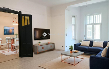 Eladó nagypolgári lakás a II. kerület, Víziváros kedvelt utcájábanTeljeskörűen felújított, 121 m²-es, első emeleti nagypolgári lakás eladó Budapest egyik legpatinásabb részén, a Szász Károly utcában. A szecessziós stílusú, 1920 körül épült társasház kiváló állapotban van, rendezett lakóközösséggel és lifttel. A lakás azonnal költözhető!Főbb jellemzők:Alapterület: 121 m² + 3 m² saját tároló a pinceszintenElhelyezkedés: I. emelet, liftes házSzobák: 3 külön nyíló szoba + nagy konyha-étkezőFürdőszobák: Külön és egyben is, WC különBelmagasság: 360 cm klasszikus nagypolgári térérzetÁllapot: Teljeskörűen felújított (vezetékek, burkolatok, nyílászárók, gépészet)Fűtés: Új, energiatakarékos gáz cirkó kazán, bélelt kéménnyelKonyha: Egyedi tervezésű, gépesített, tágas étkezővelTájolás: KÉK, világos terek, utcai és udvari kilátásParkolás: Utcán, lakossági engedéllyelLokáció:Kiváló közlekedés: 4-6 villamos, 11-es és 91-es busz, M2 metró pár perc sétáraKözelben: Mechwart liget, Margitsziget, Mammut BevásárlóközpontSzolgáltatások: Iskolák, óvodák, éttermek, üzletek, rendelők a közelbenExtra előnyök:Közös költség: 30 000 Ft/hó, tartalmazza a felújítási alapot és korlátlan hidegvíz használatotKomfort: DuplakomfortosFenntarthatóság: Modern gépészet, energiatakarékos fűtésEz az ingatlan ideális választás családoknak, de irodának vagy rendelőnek is kiváló befektetés lehet presztízs értékű lokációban, modern, mégis klasszikus hangulatú környezetben. Egy lehetséges nappali hangulat berendezett világát mutatom be AI-val módosított képeken.