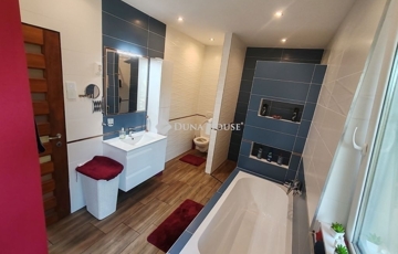 Eladó Kápolnásnyéken 210 m2-es kitűnő állapotú családi ház, 1135 m2-es telken.Velencei tótól 800 méterre, M7-es autópályától 3 km-re.A családi ház 2021-ben épült.Földszinten található 3 hálószoba, gardrób, egy légtérben nappali, konyha, étkező, kamra, 2 db fürdőszoba.Szuterénben található garázs, kamra, wc kézmosóval, gépészeti helyiség.Gépészeti egységben elhelyezésre került: napelem, napkollektor, akkupakkal ellátott hibrid inverter vezérlés, víztisztító-vízlágyító.Családi ház kialakítása, elrendezése, burkolatai luxus körülményeket biztosít.Több kijárat segít a házat körülölelő teraszra kijutni, hogy panorámás kilátással rálássunk a kerti-tóra.Parkosított kerthez tartozik: saját patak, kerti tó, grillező, szaletli.Különálló wellness épület szintén hatalmas ablakfelülettel, ledes, csillagos égbolttal rendelkezik. Beépítésre került egy különálló wc, egy esőztetős zuhanyzó, 4 személyes (bluetooth-os, két motoros) jakuzzi és egy infraszauna. Az épülethez közvetlen napozóterasz tartozik. Televízió és internet kapcsolat is tartozik a kikapcsolódáshoz.A ház felszereltségét a mai kor igényeinek megfelelő eszközök segítik. A kerti éjszakai világítást alkonykapcsolóval ellátott, energiatakarékos LED fényforrások biztosítják. A mélygarázs lejáratát eső és hőmérséklet szenzoros padlófűtés tartja a jeges időkben is szárazon. Mindkét garázskapu elektromos, akár csak a telefonról, távirányítóról üzemeltethető úszó illetve szárnyas kapu. Az ingatlan minden irányban térfigyelő (éjjel látó) kamerákkal van felszerelve.A lakótér fűtését romantikus, gyors és energiatakarékos megoldások adják. A lakótér központi eleme az 12 kW-os látványkandalló eredeti csiszolt kövekből, de a programozható, helyiségenként szabályozható radiátorok (törölközőszárító) épp úgy gondoskodnak a kellemes hőmérsékletről, mint a padlófűtés. Nem utolsó sorban pedig 3 db 3,5 kW-os hűtő-fűtő, energiatakarékos, minőségi klíma jelent megoldást úgy a hideg, mint a meleg idő ellen.Az ingatlan kizárólag elektromos ellátottságú, megújuló energia támogatásokkal, így gázszámlával nem rendelkezik. Szennyvíz csatorna helyett, egyedi bio szennyvíz tisztító tartállyal lett felszerelve.További extrák, a wifiről irányítható kapcsolók, elektromos vezérlésű redőnyök. A nyílászárókon szúnyogháló. Teljes szélességben pakolható (de nem járható) padlástér. Az ingatlan távolabbi pontjaihoz internet erősítő jeladók viszik a kapcsolatot.A ház téglából épült, fafödémmel, tagolt, betoncserép fedésű tetőzettel. A falak 15 cm-es, míg a födém 20 cm-es szigeteléssel ellátott. Az üveges nyílászárók 3 rétegű, biztonsági üveggel védenek a hang illetve hőmérséklet be/ki jutásától.Környezet: Velence Korzó, szabad strand, vízisípálya 8 perc séta (3p autó) Központ: Élelmiszerboltok, orvos, ügyvéd, fodrász 5 percre, óvoda, általános iskola szintén. Szomszéd településen (kerékpárral 5 perc) 8 osztályos két tannyelvű gimnázium, középiskola, sport akadémia is találhatóSportolási és kirándulási lehetőségek. Bp autóval 35 perc, vonattal 40 perc. Székesfehérvár autóval 15 perc, vonattal 20 perc.Az ingatlan per-, és tehermentes. Megállapodás után, rövid időn belül költözhető!Ingatlan beszámítás is szóba jöhet.Keressen bizalommal!